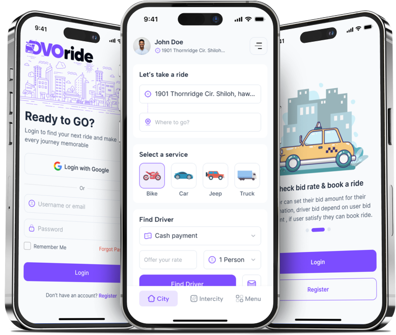 Riders choose their preferred driver based on the bids received and enjoy a comfortable ride, ride details is saved in riders history for security reasons.